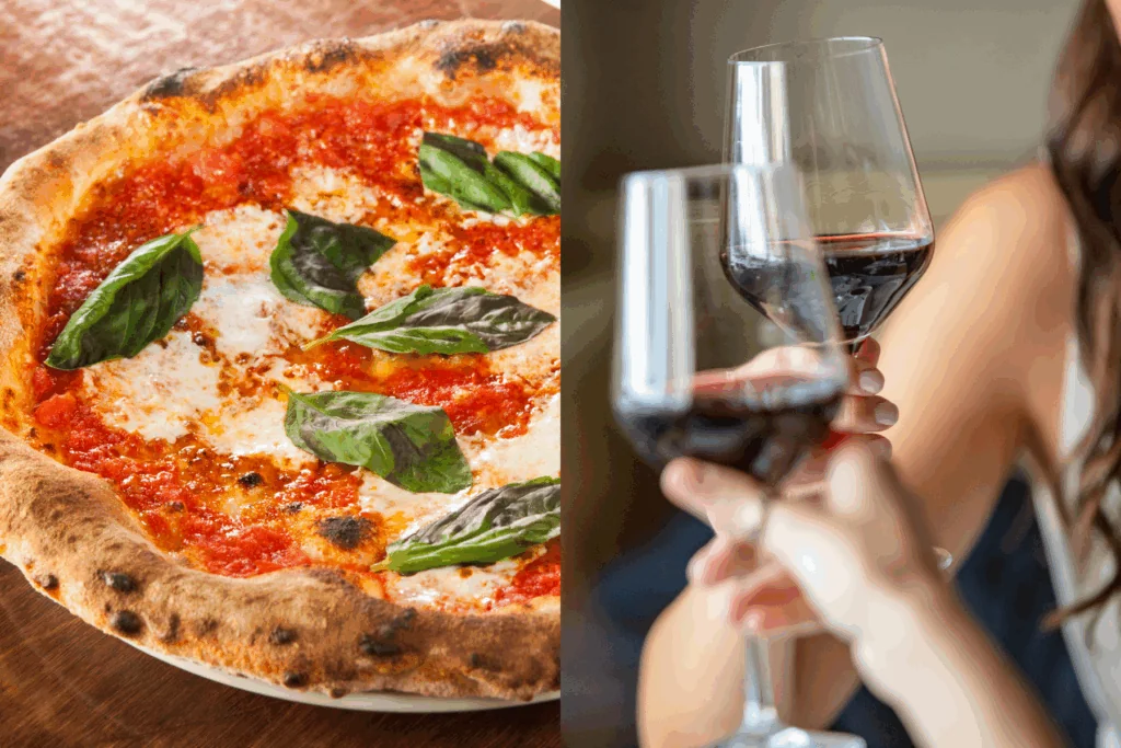 On Monday Night from 6–11 PM, enjoy our Wine & Pizza Pair & Share special: Artisan pizza + a glass of house wine for just $20.